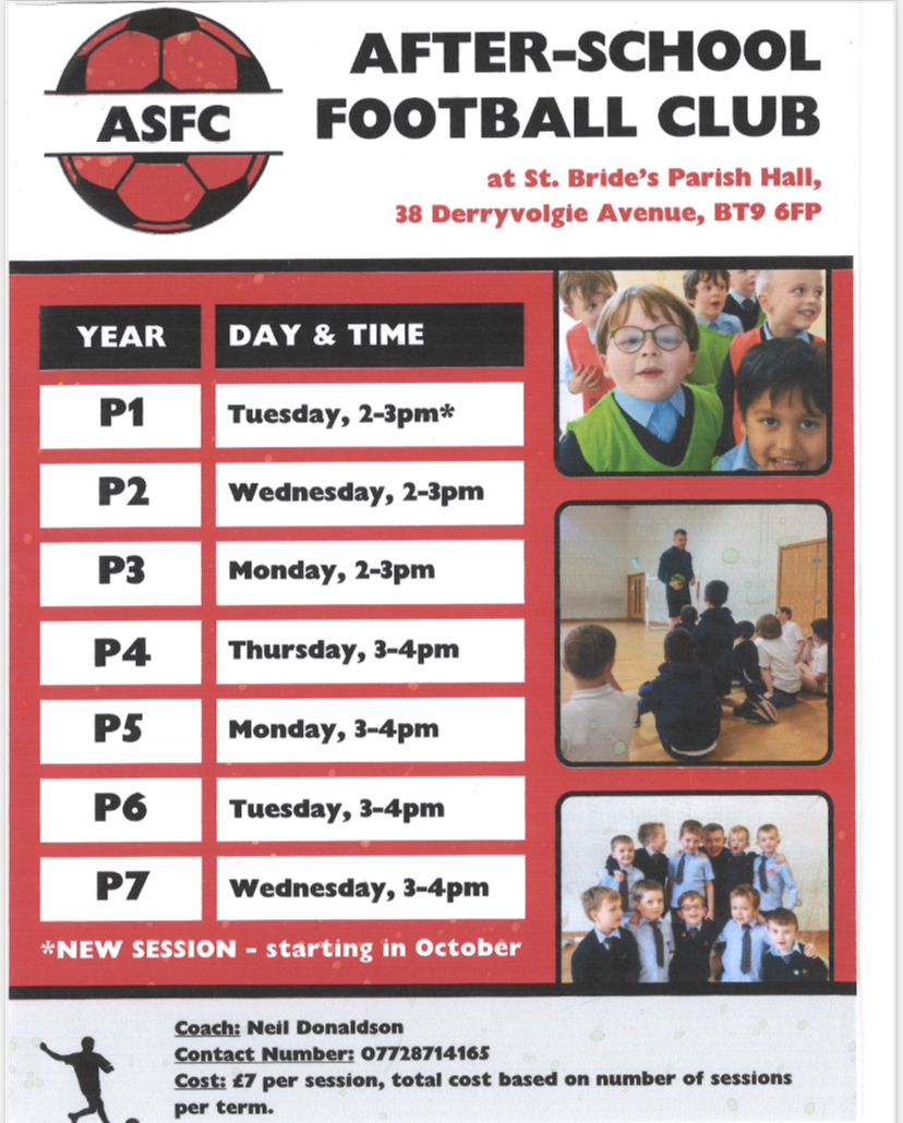 Soccer is run in the St. Brigid’s Parish Hall by Mr Neil Donaldson.